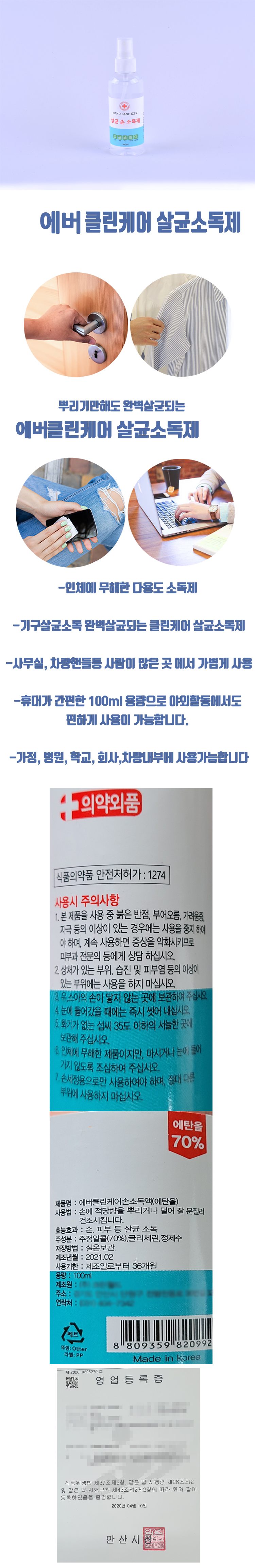 ±¸ ¼º ¿¡¹öÅ©¸°ÄÉ¾î »ì±Õ ¼Õ ¼Òµ¶Á¦ 100ml(½ºÇÁ·¹ÀÌ)