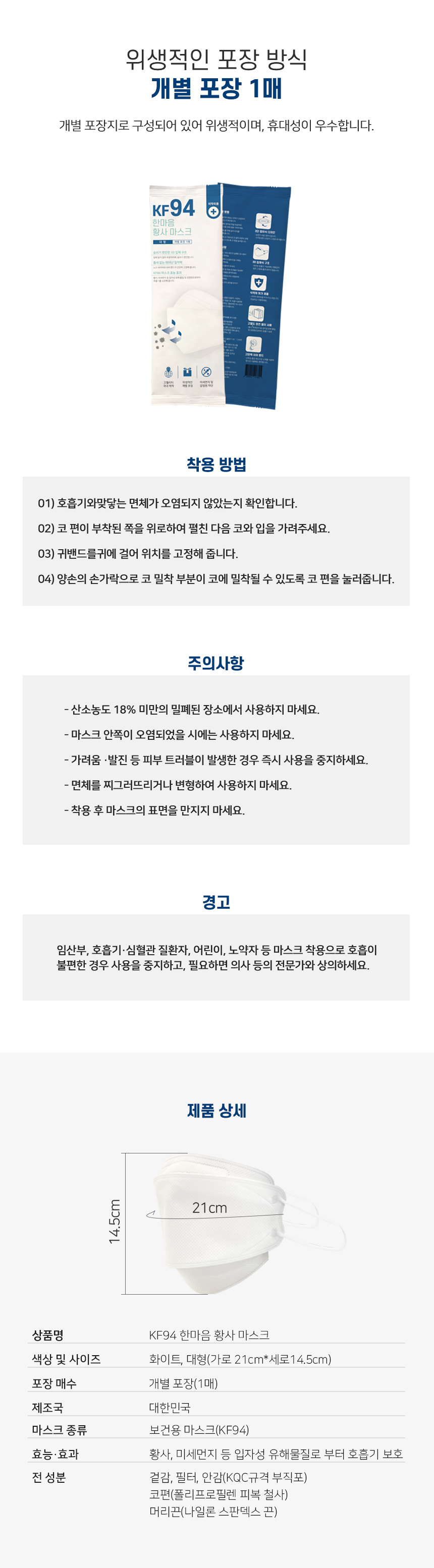 ¼û½¬°í Ȳ»ç¹æ¿ª ¸¶½ºÅ© KF94 ´ëÇü ÈÀÌÆ®/ ºí·¢ 1P (ÀǾà¿Üǰ)